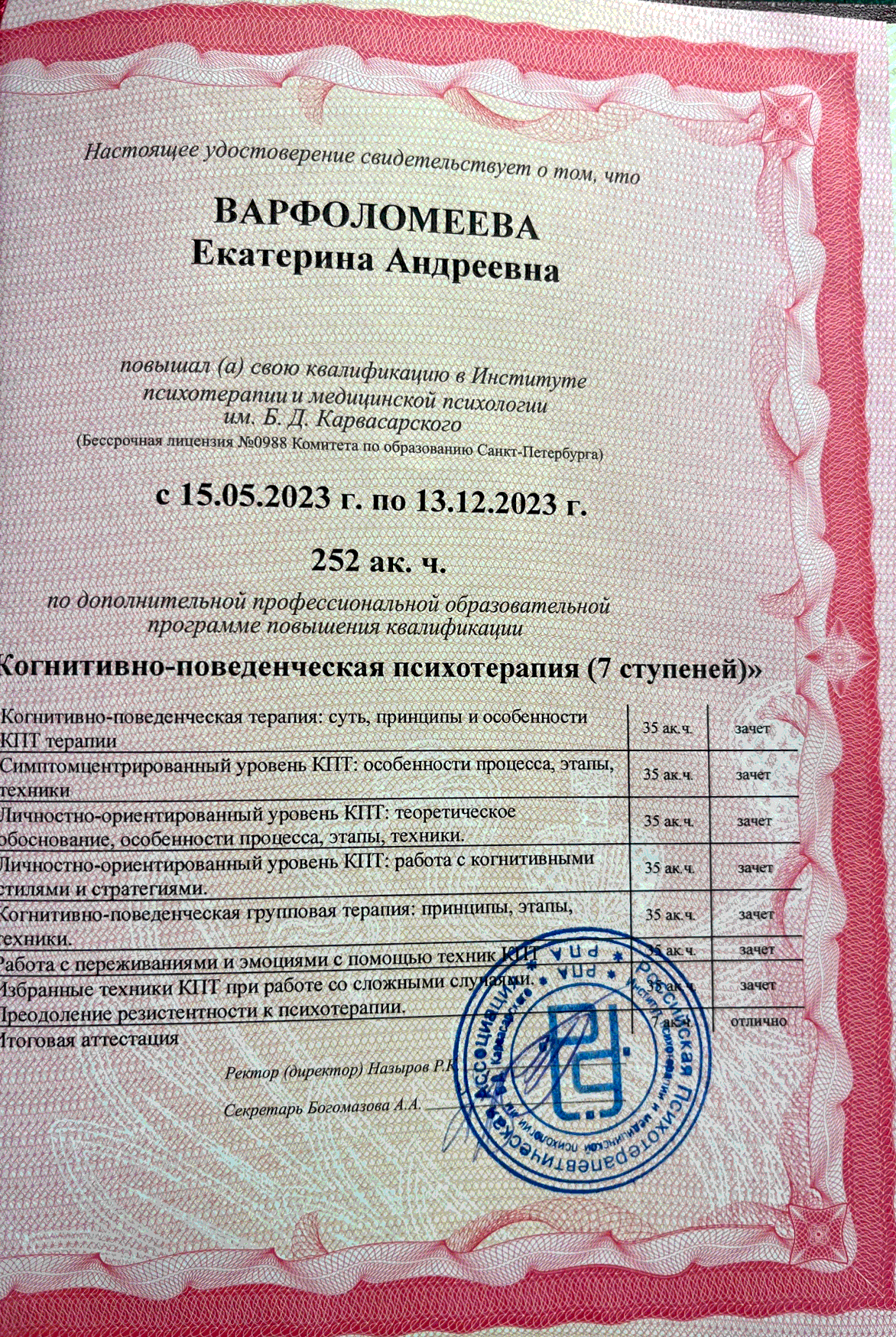 Метод терапии: Когнитивно-поведенческая терапия (КПТ)