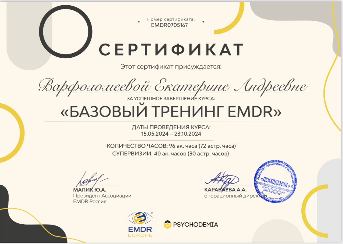 Метод терапии: Десенсибилизация и переработка с помощью движений глаз (ДПДГ / EMDR)