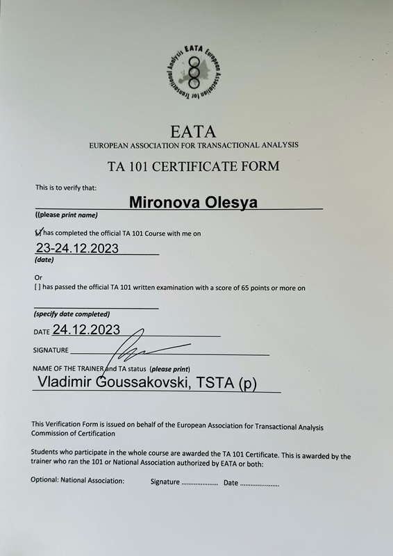 Метод терапии: Транзактный анализ