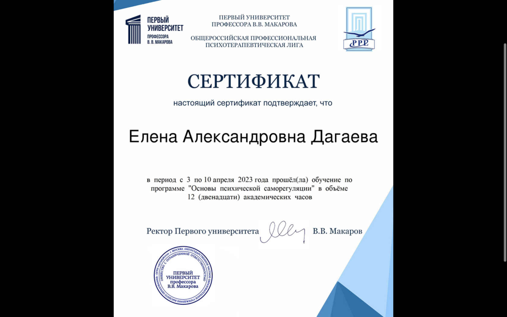 2023 г. – Основы психической регуляции. Ведущий – А. Б. Стрельченко. Первый университет проф. В. В. Макарова, (Москва).