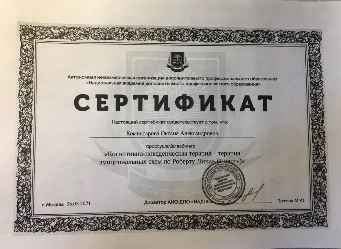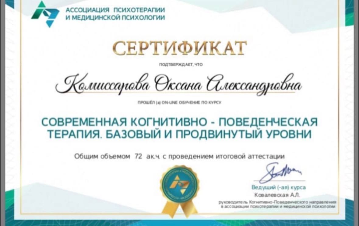 Метод терапии: Когнитивно-поведенческая терапия (КПТ)