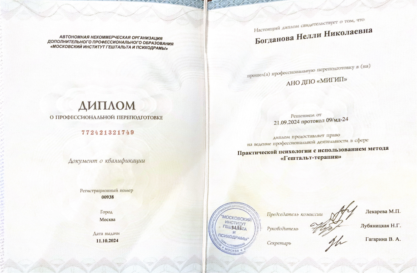 Пол специалиста: Женский